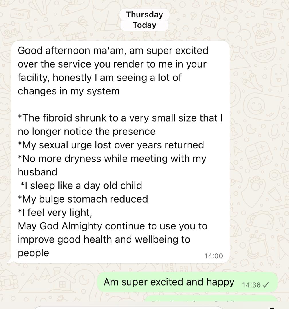 Hajiya Saratu Kassim established Fertility Lounge out of a heartfelt desire to provide accessible, effective, and compassionate fertility care. Drawing on years of experience in natural healing and reproductive wellness, she has helped countless women and men overcome fertility struggles with patience, empathy, and holistic guidance.